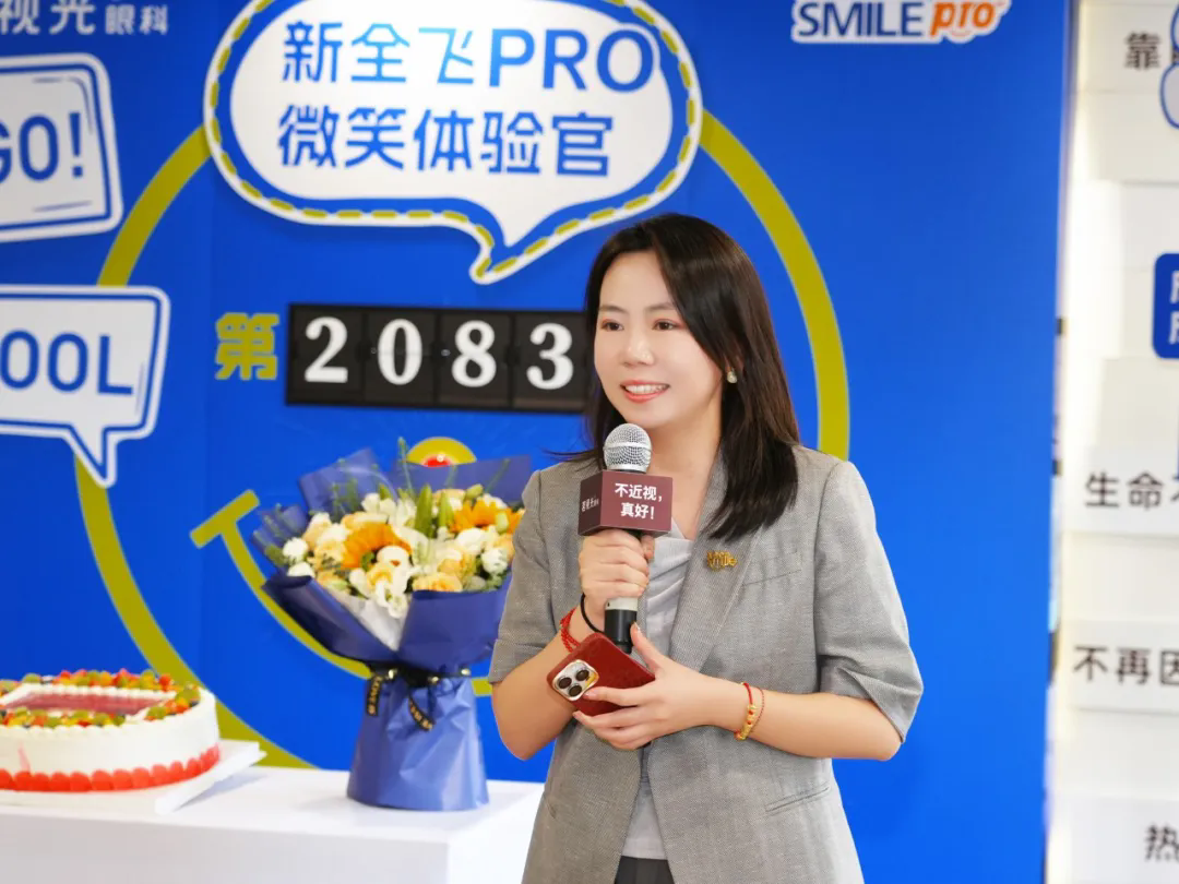 朱佳红经理在致辞中讲到:“新全飞秒Smile Pro将近视激光手术带入了一个崭新的时代,茗视光眼科在如此短的时间里突破2000例,占全国Smile Pro手术量近1/10,这背后不仅仅是一个数字的积累,更是作为新技术开拓者和引领者展示出来的实力。”