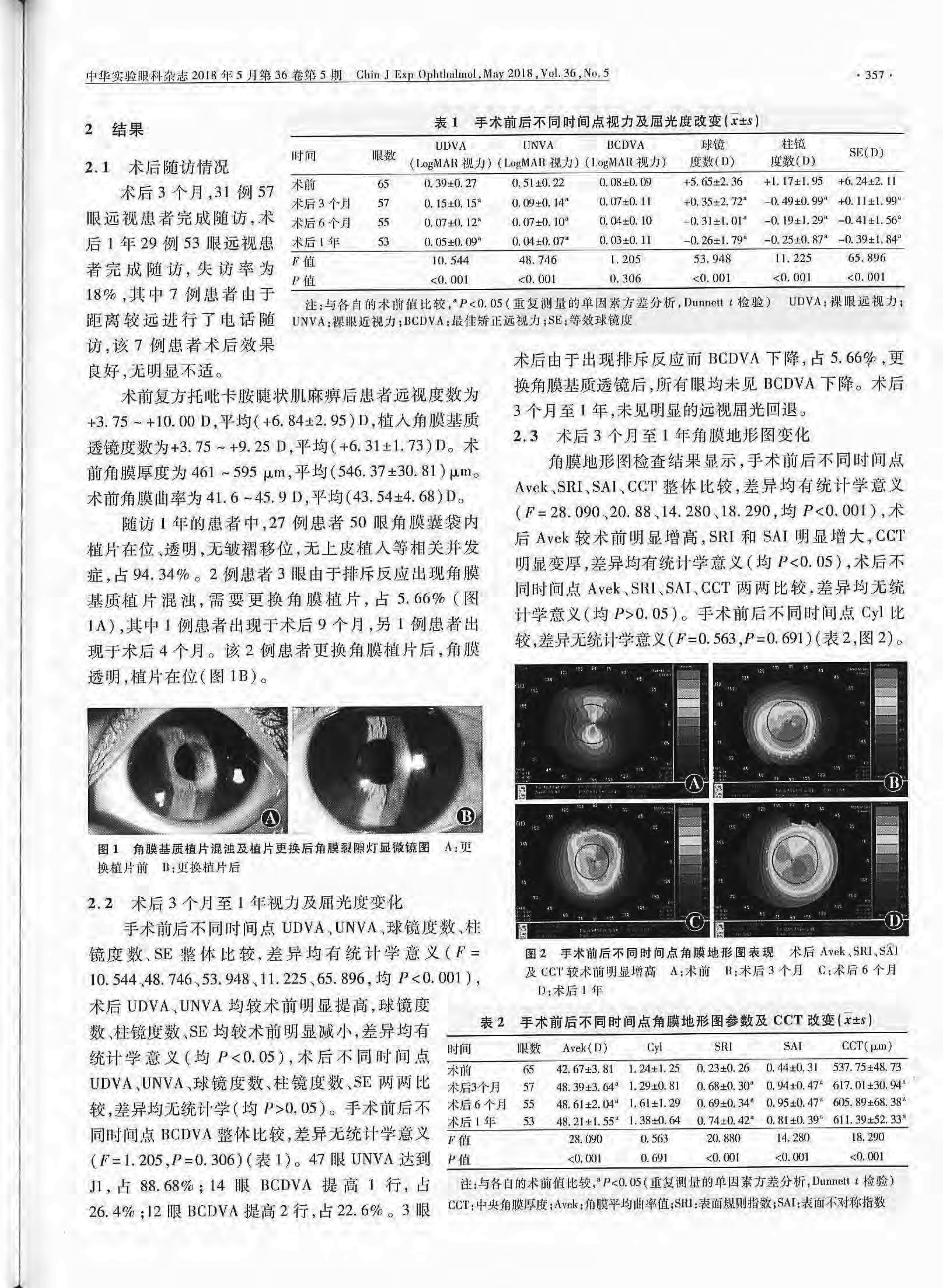 全飞秒激光角膜基质透镜植入术矫治中高度远视的一年随访研究