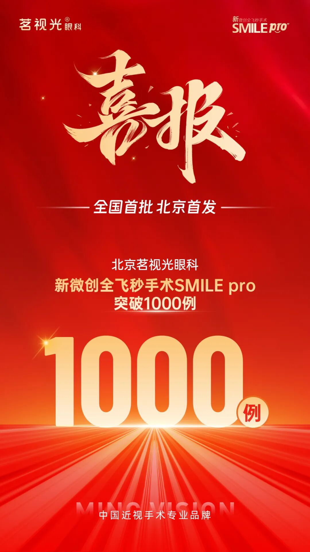 7月1日,北京茗视光眼科迎来具有重要意义的里程碑时刻——作为全国首批、北京首家引进蔡司新一代机器人VisuMax800飞秒激光设备,2025年5月10日开展新微创全飞秒SmilePro手术以来,周跃华和李莹教授带领的茗视光眼科近视医疗团队,共同在近两个月内率先完成超1000例SmilePro手术。